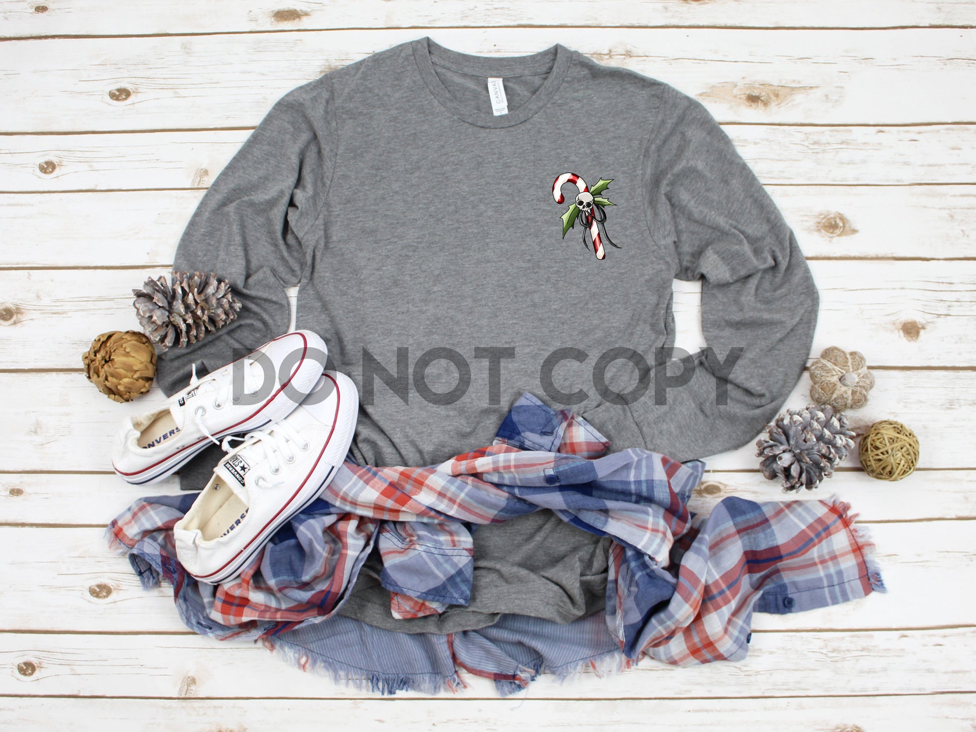 Candy Cane Christmas Skull pocket size HIGH HEAT Full color Screen Print transfer