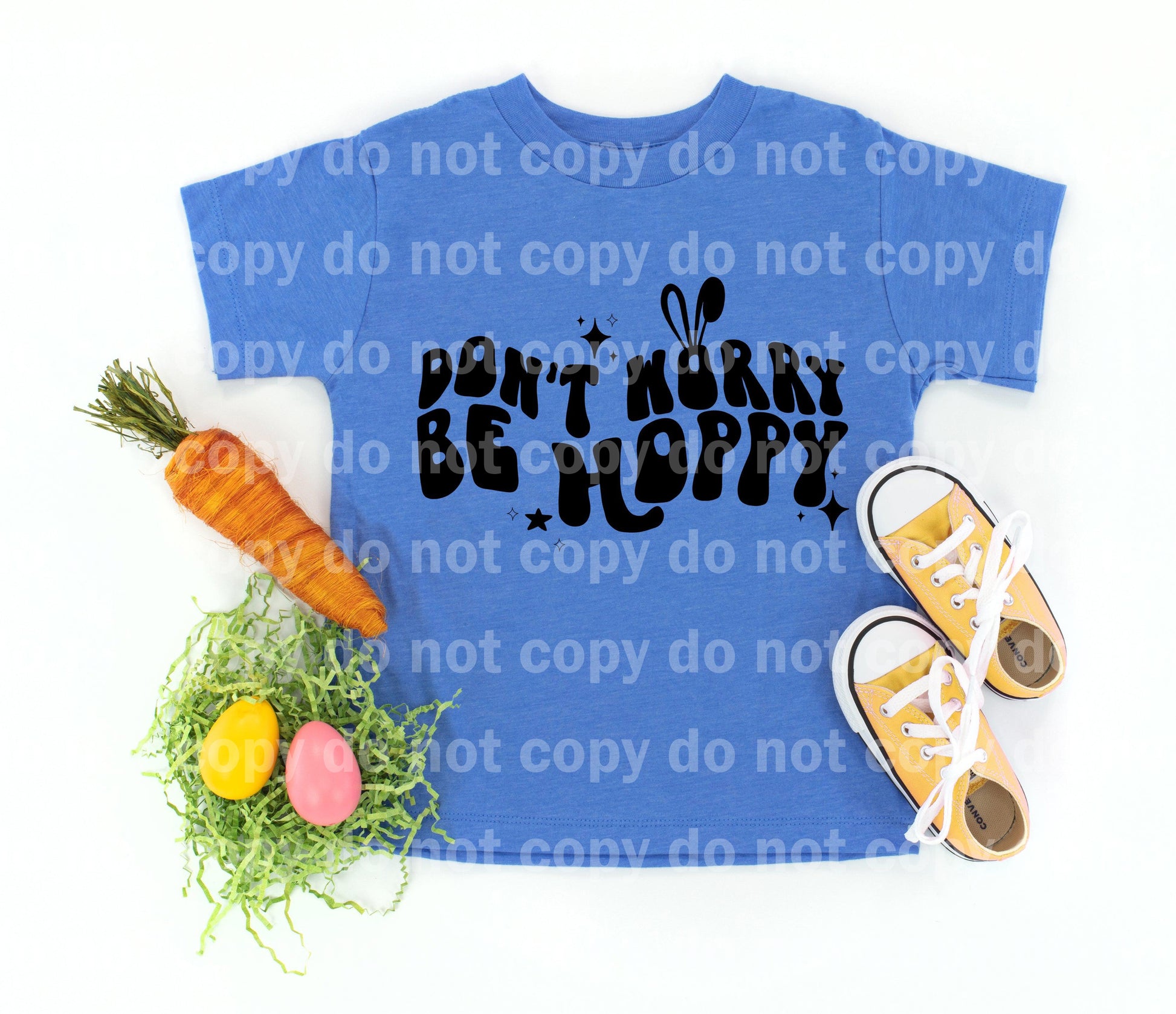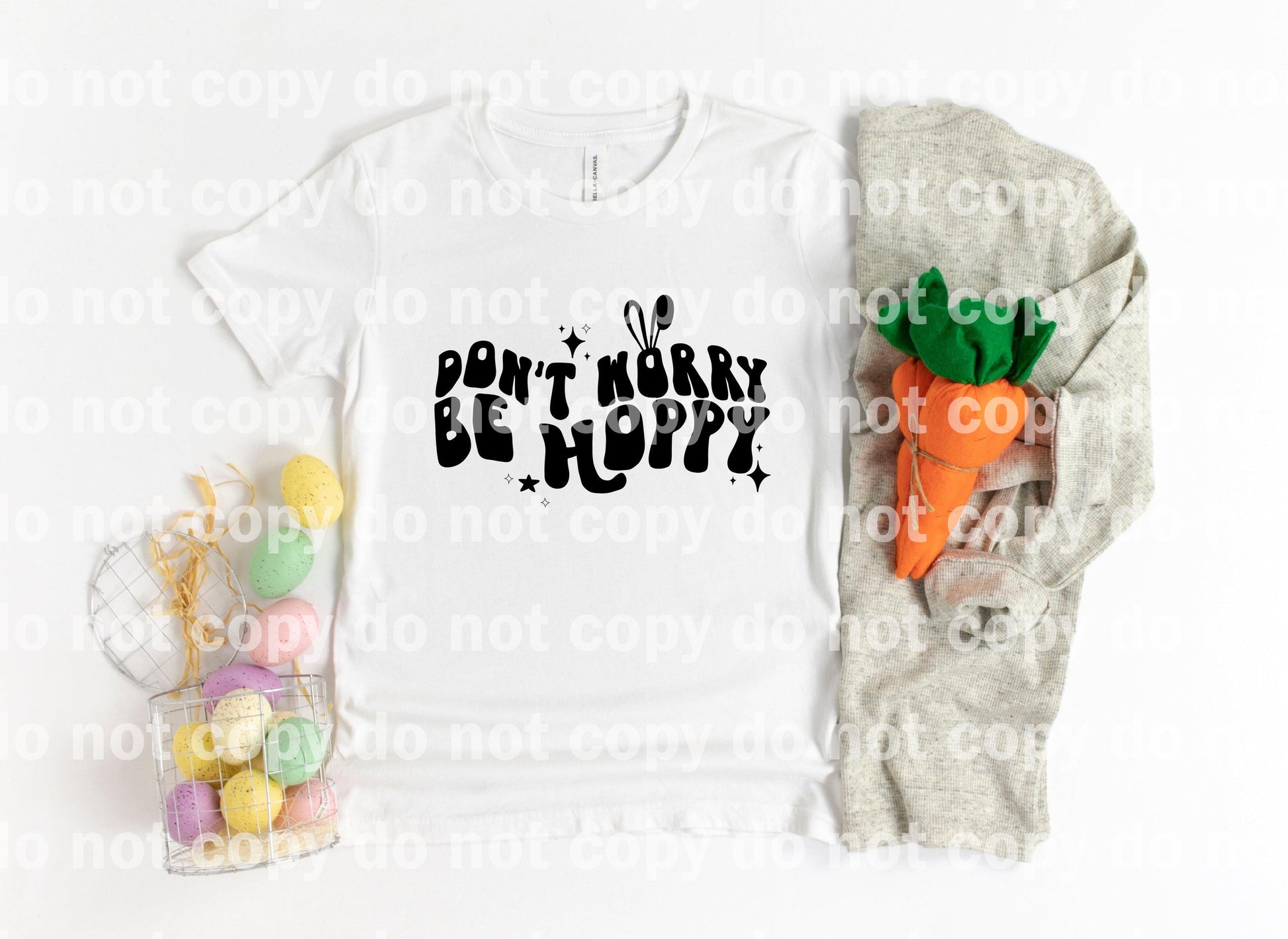 Don't Worry Be Happy Typography Bunny Ear Black Dream Print or Sublimation Print