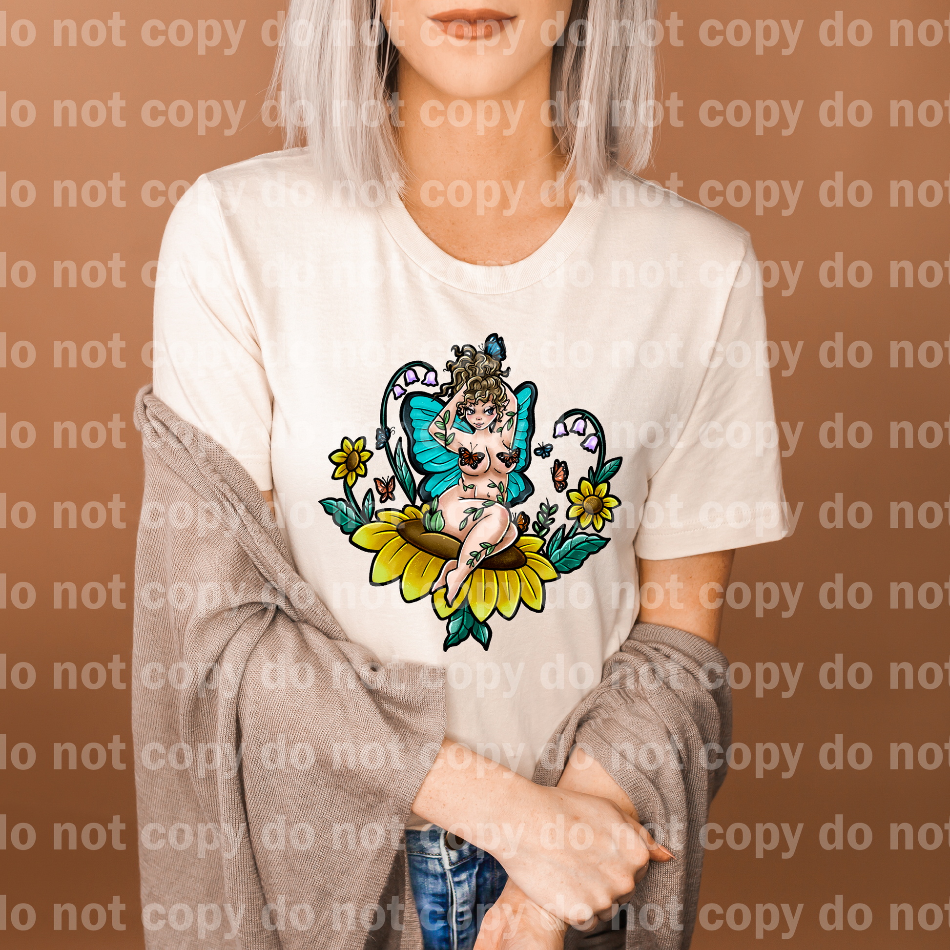 Fairy Pin Up Sunflower Black Outline/White Outline