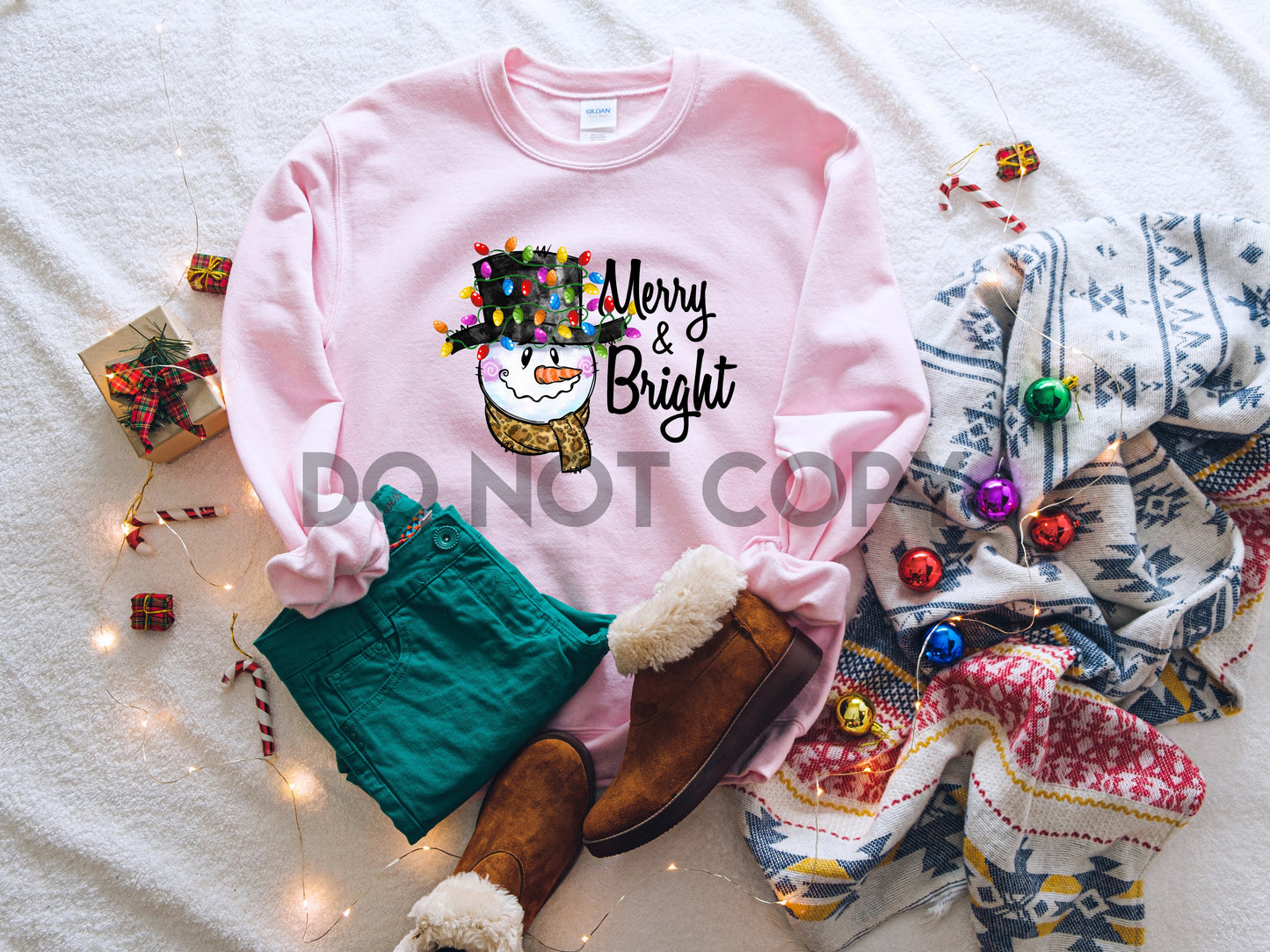 Merry and Bright Christmas Snowman Head Dream Print or Sublimation Print